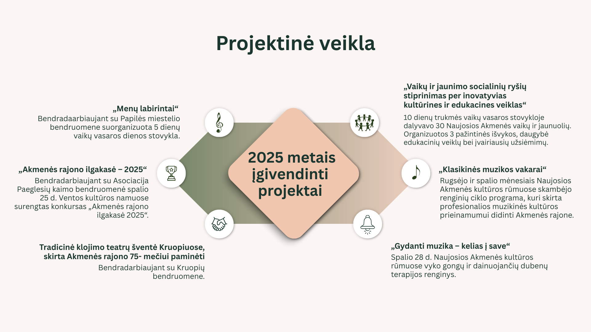 Ateityje planuojami tokie 1,5 val. trukmės susitikimai tikimės padės gyventojui priartėti prie kultūrinio lauko konteksto, skatins brandinti bei pateikti konkrečias įdėjas ir siūlymus.