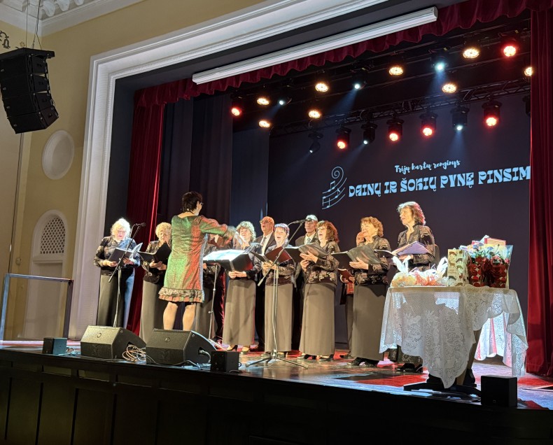 Lapkričio 26 d. Naujosios Akmenės kultūros rūmuose skambėjo muzika ir sukosi šokėjai – čia vyko jau tradicija tampantis Trijų kartų renginys „Dainų ir šokių pynę